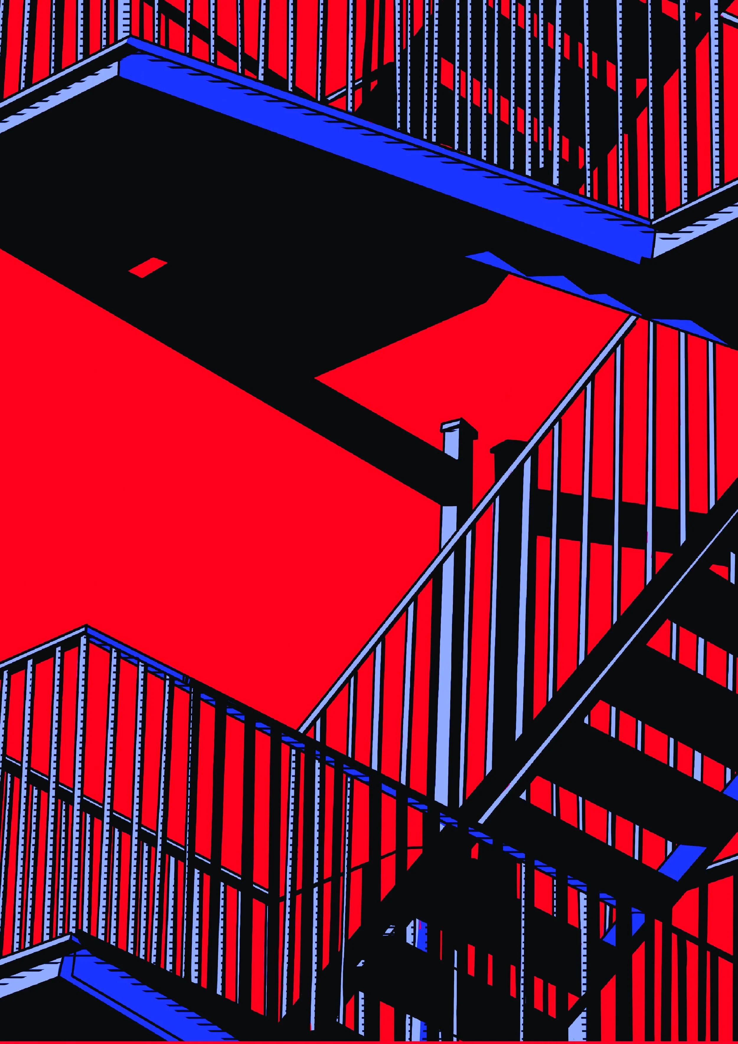 Her work revolves around graphic images inspired by the worlds of fashion, architecture, comics and design.